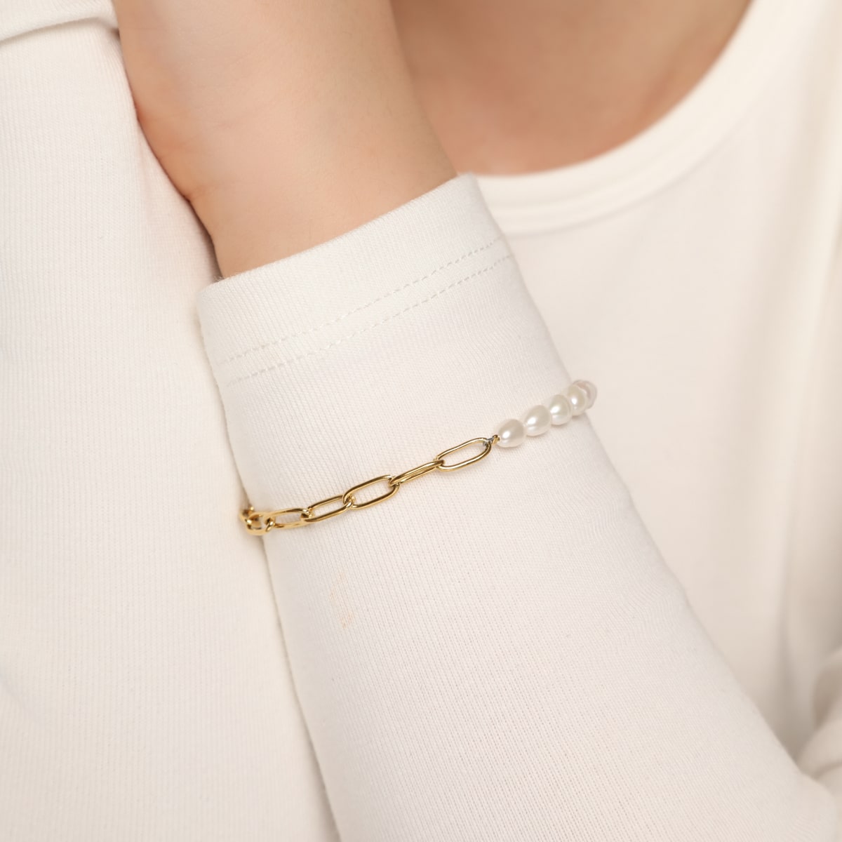 Wasserfestes Armband mit Perlen Damen vergoldet Edelstahl