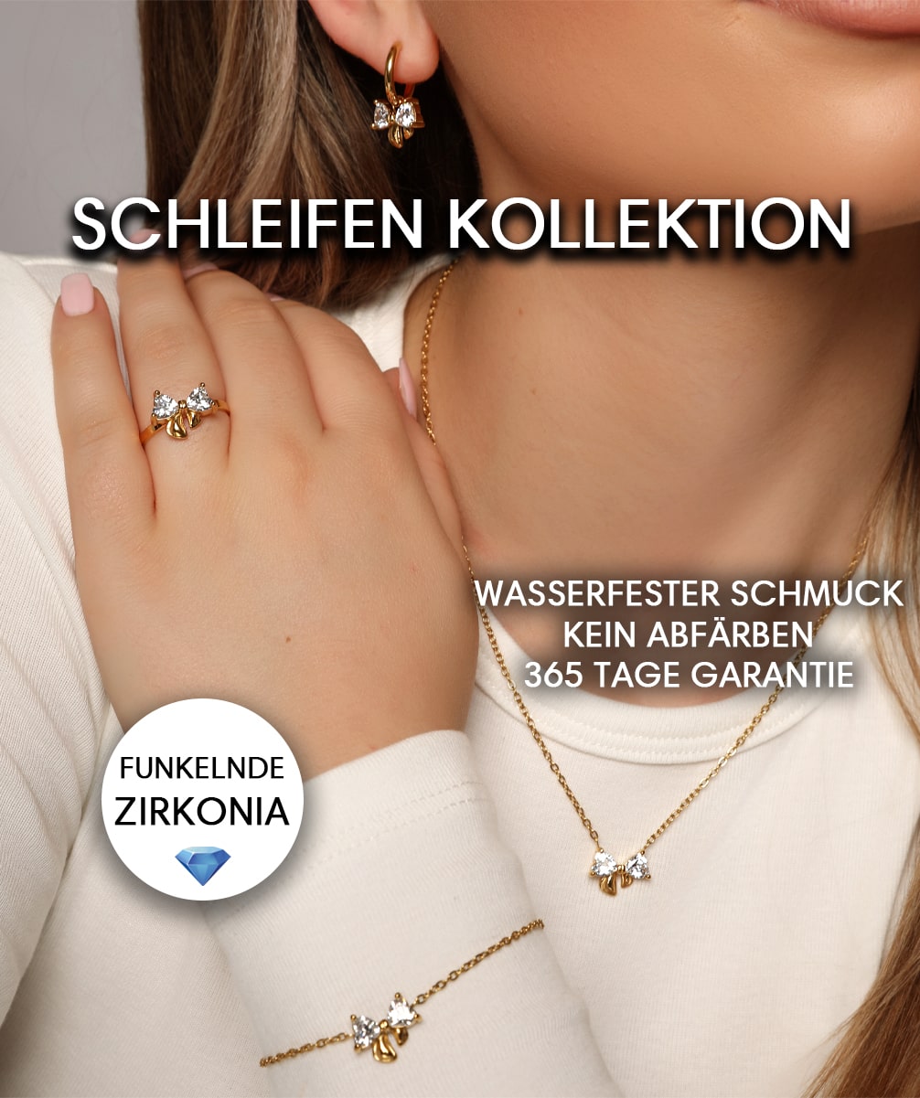 Die Schleifen Kollektion 🎀 vereint zeitloses Design mit filigraner Raffinesse. Hochwertige Materialien und edle Details machen jedes Schmuckstück zu einem Statement von Stil und Klasse.