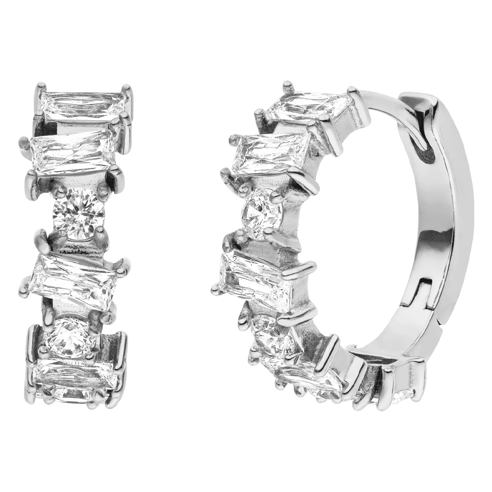 silberne Creolen Ohrringe wasserfest Zirkonia Steine speziell