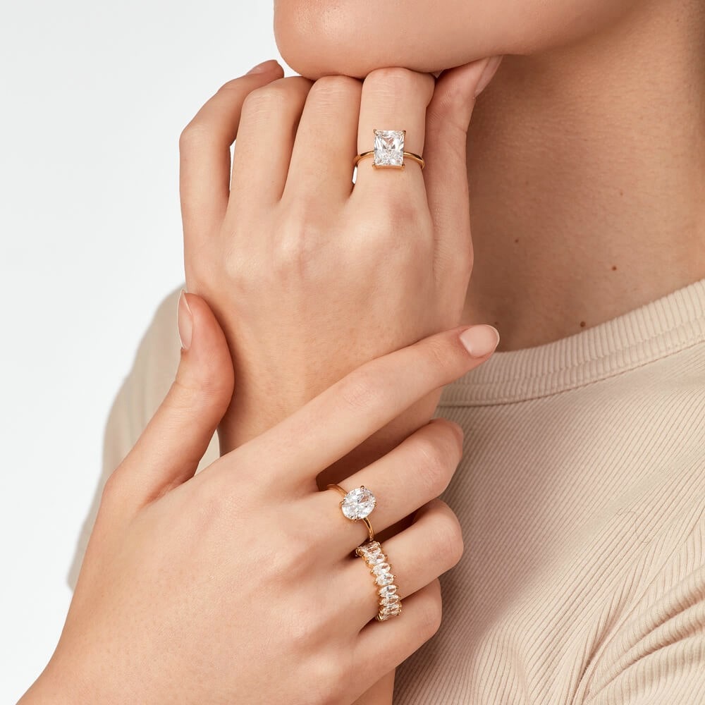 Zirkonia Ringe Damen wasserfest Glitzer Steine Gold