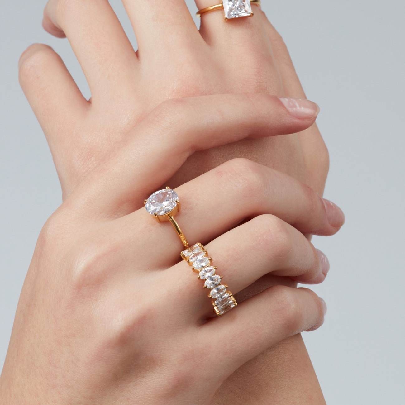 Zirkonia Ring Damen wasserfest Glitzer Steine Marquise