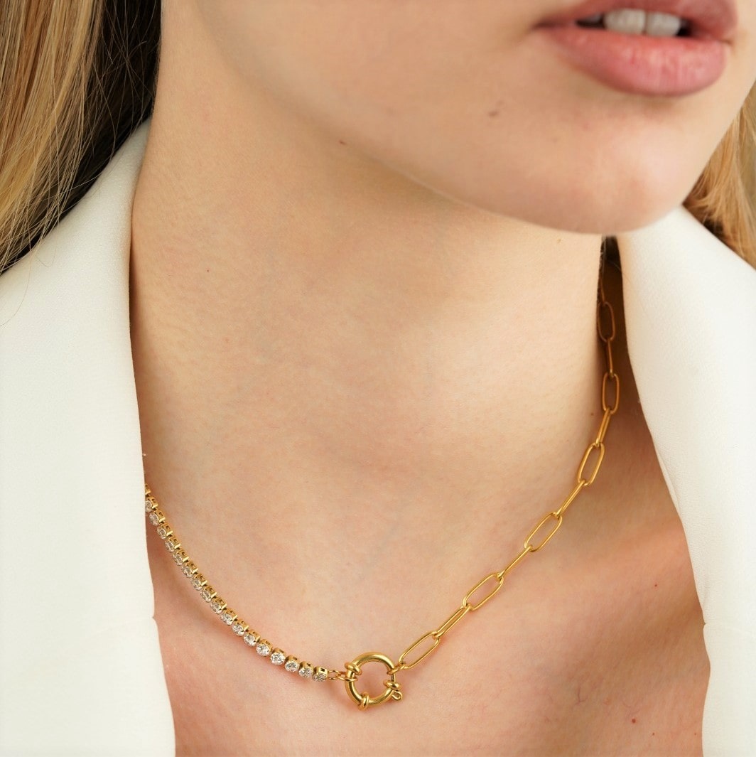 Tennis Halskette Damen 18K vergoldet halbseitig wasserfest