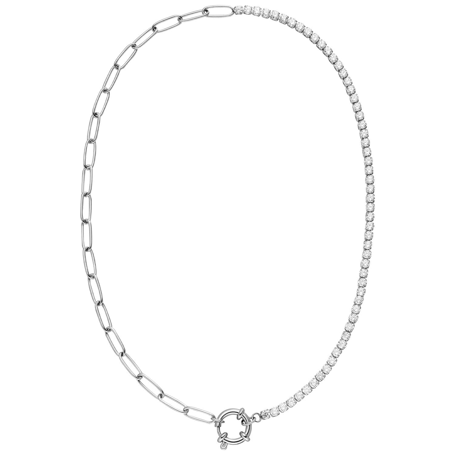 Halbseitige Tennis Halskette Silber wasserfest Glitzer Steinchen